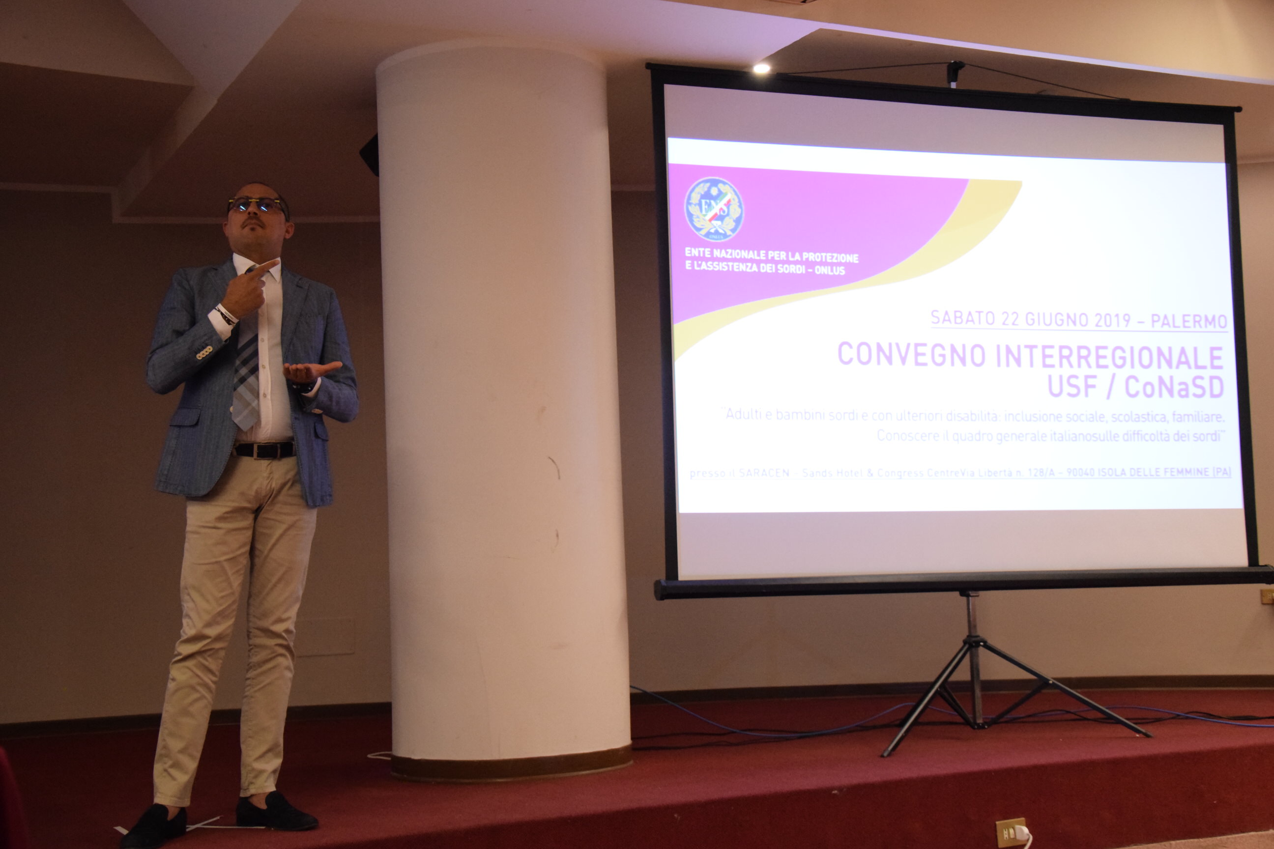 Dopo le tappe di Milano, Bari e Bologna, oggi (22 giugno 2019) siamo stati a Palermo per il convegno interregionale "adulti e bambini sordi e con ulteriori disabilità: inclusione sociale, scolastica e familiare" organizzato dall'Area USF - Università, Scuola e Famiglia - ENS e dal CoNaSD - Comitato Nazionale Sordi con più Disabilità