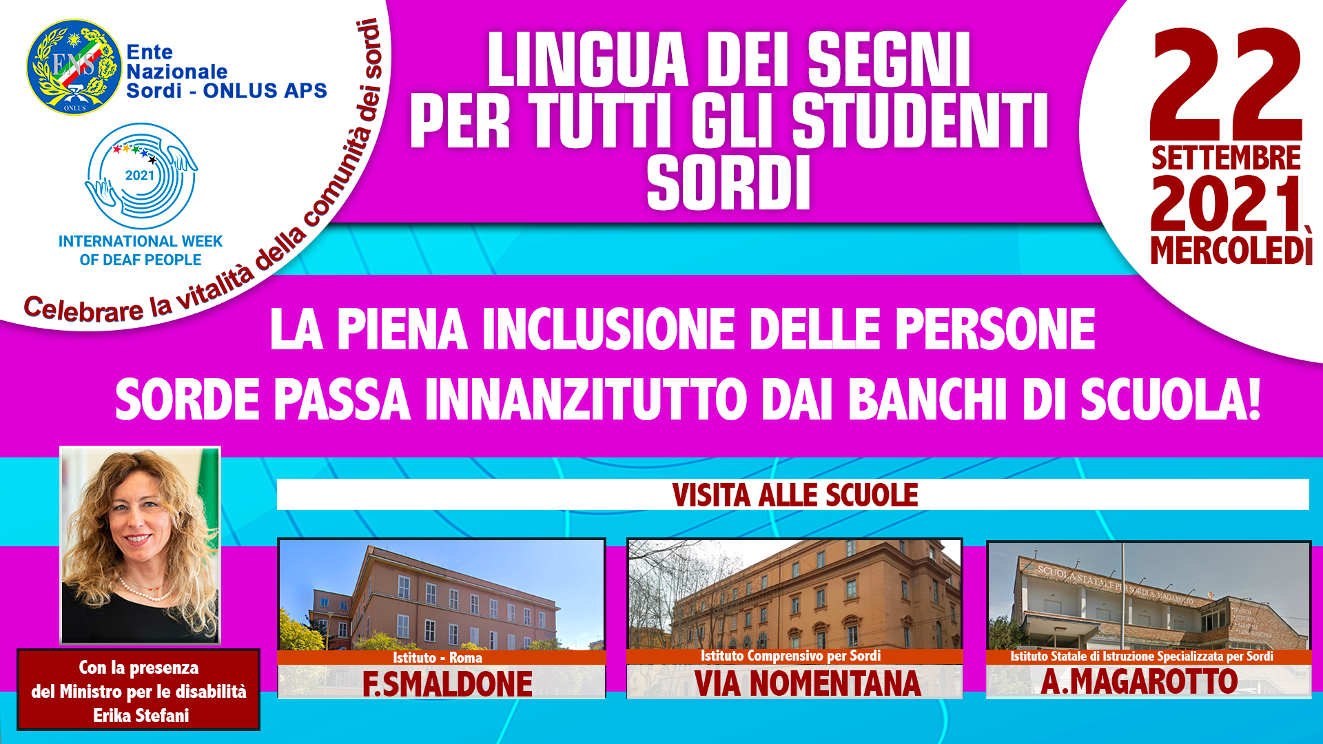 Ogni evento di questa settimana vuole includere tutte le realtà che animano la nostra comunità, incluse le famiglie delle persone sorde, gli interpreti di lingua dei segni e tutti coloro che gravitano intorno al mondo della sordità. Le celebrazioni, ovviamente, sono aperte anche a tutti i soggetti interessati, sociali e istituzionali, e a chiunque voglia e lotti per una società più giusta, equa e rispettosa dei diritti umani.